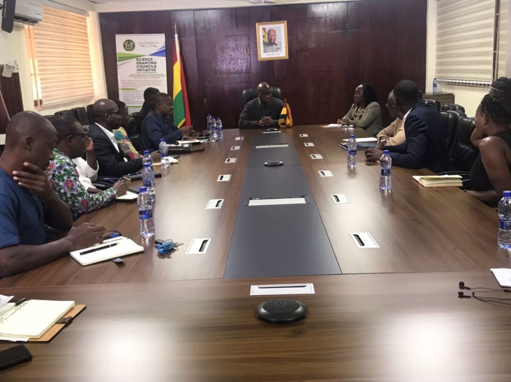 On Monday, 12th May 2025, the Minister for Environment, Science and Technology, Hon. Dr. Ibrahim Murtala Muhammed (MP), receives a delegation from the Association of Ghana Industries (AGI) at the Ministry’s offices in Accra.
