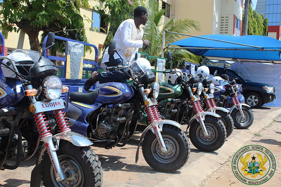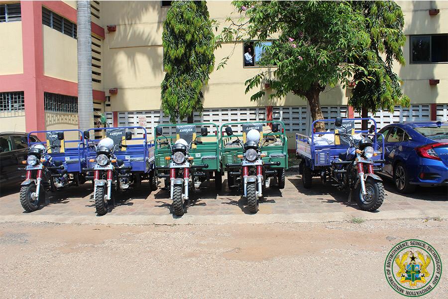 The Minister for MESTI Prof. Kwabena Frimpong-Boateng has presented 5 tricycles, 500 waste picking devices and 500 gloves, donated by Nestle Ghana Limited, to the Pure Water Waste Collectors Association as part of efforts to manage the plastics waste menace in Ghana.